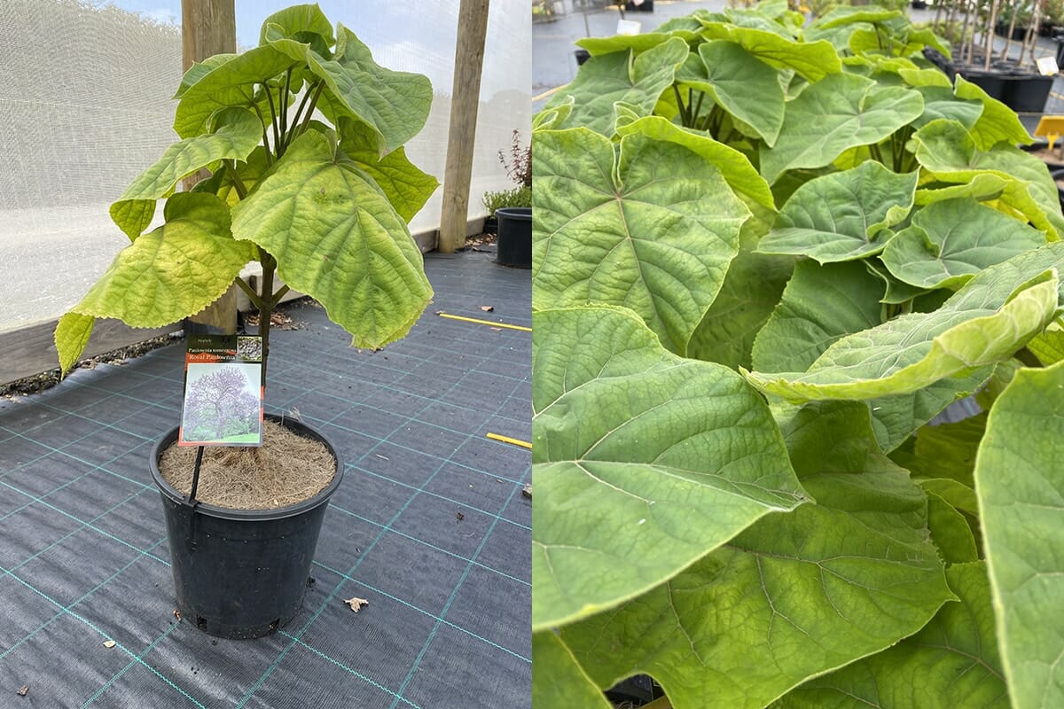 Other common names: Princess tree, Empress tree, or Foxglove-tree. A large deciduous tree with dark green, heart shaped leaves that are hairy. The flowers are a tubular foxglove like pinky lilac colour that appear in spring for a stunning sight. This is a very hardy tree that grows very quickly and is tolerant of atmospheric pollution. Mature growth 12 x 10m