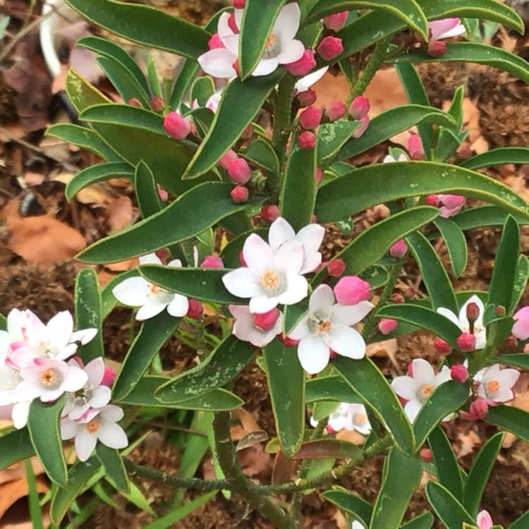 Winter Rouge produces masses of pink buds that open to stunning, white starry flowers. This is a hardy, compact shrub that has bright green aromatic foliage. Grows to roughly 80cm in height.