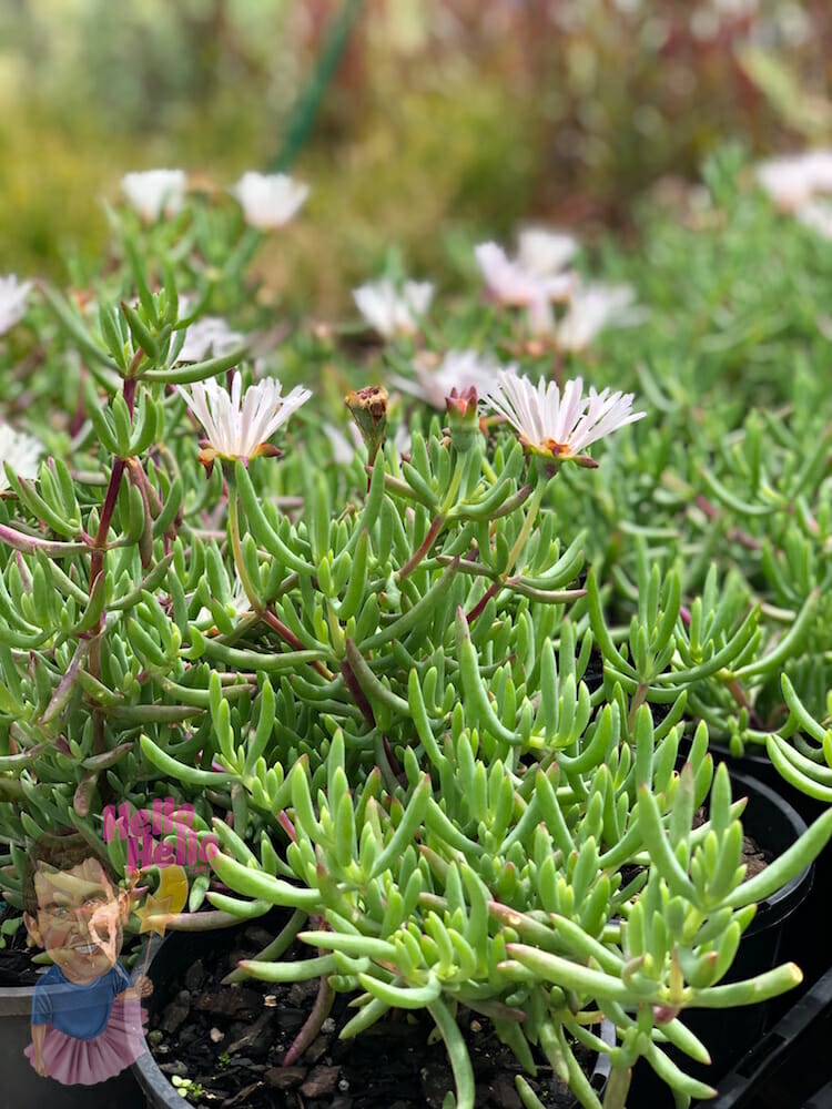 Pig Face White has bunches of bright frosty white daisy-like flowers that open during Summer. It thrives in a full sun position and requires little water once established. Suitable for rockeries and low maintenance gardens. Very hardy and easy to grow. Ideal for pots and containers.