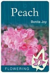 Bonita Joy flowering peach is a ornamental (non fruiting) medium sized tree with stunning colours. It has green serrated leaves in summer, the leaves then turn golden yellow in Autumn before putting on a beautiful display of blossoming flowers that are semi-double pink. Wonderful feature tree. Attracts birds and butterflies. Mature growth 4x4m