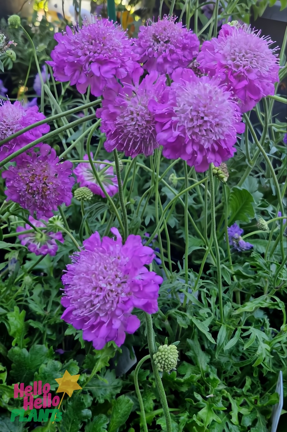 The Scabiosa varieties are brightly coloured, cushion shaped flowers, belonging to the Dipsacaceae (honeysuckle) family.