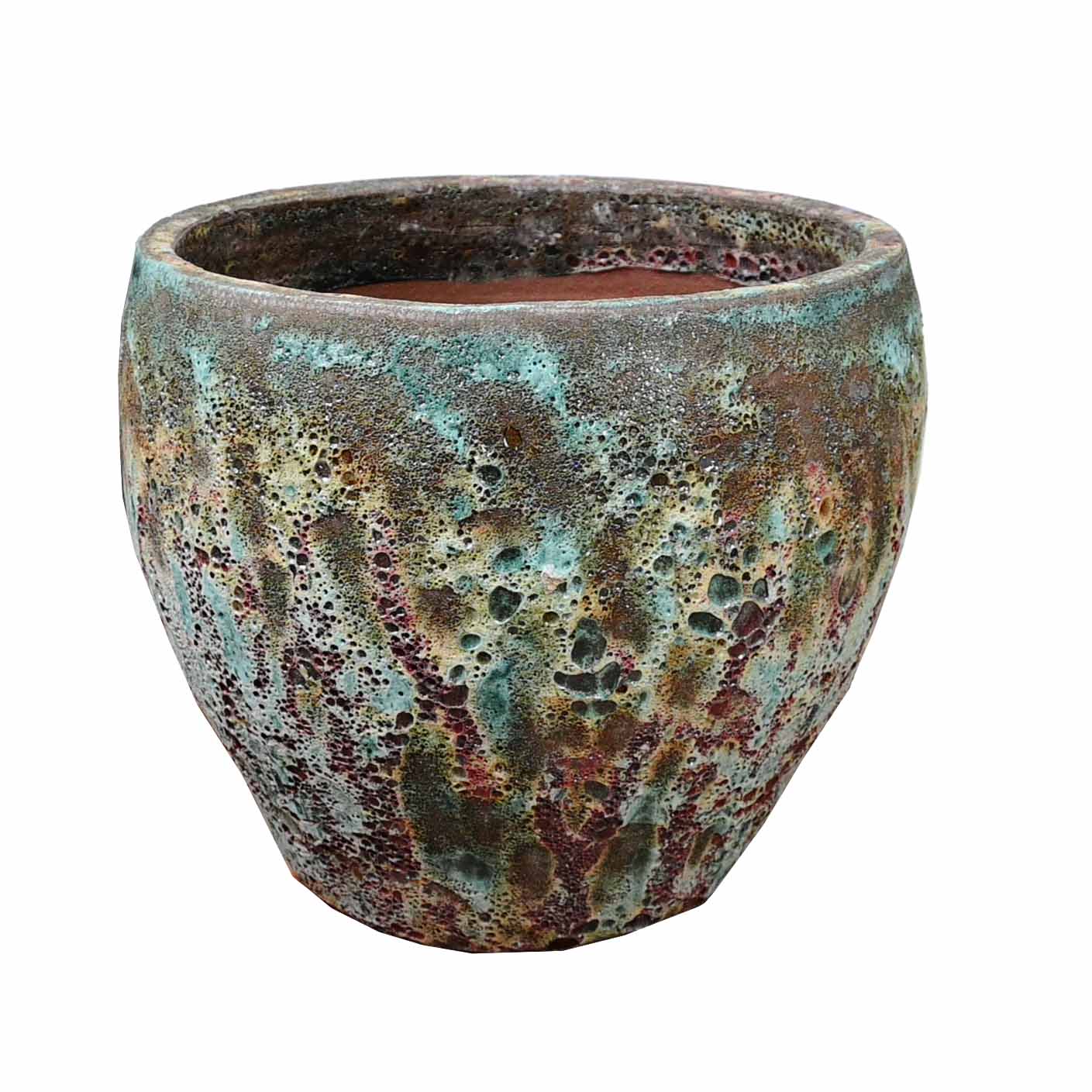 High-fired Earthenware with unique variable finish pots for indoor and outdoor use with feature plants. Great alone or try clustering different sizes to make an attractive feature.
