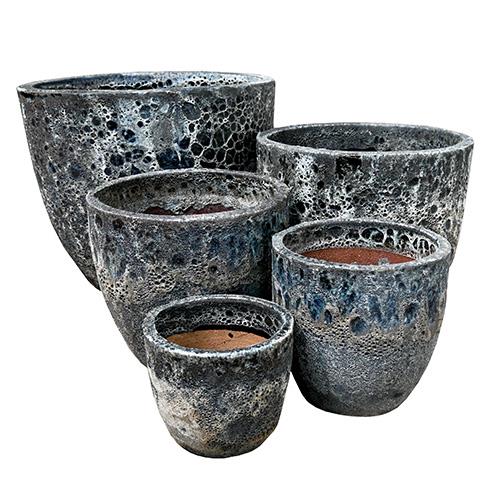 High-fired Earthenware with unique variable finish pots for indoor and outdoor use with feature plants. Great alone or try clustering different sizes to make an attractive feature.