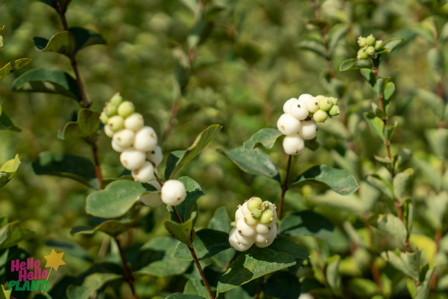 Snowberry, a medium sized, woody deciduous shrub with green ovate leaves and white fluffy berries. Prefers moist, well drained soil in full sun to part shade. Attracts birds, bees and butterflies. Mature height 1.8m tall x 1.8m wide. Animals eat these berries however, eating coralberries is not recommended.