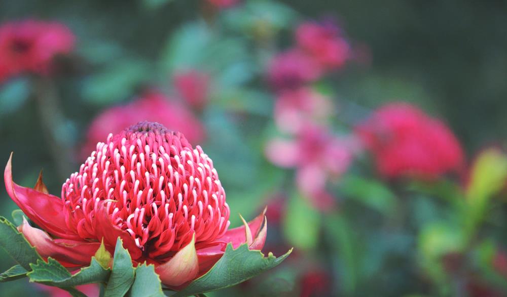 Telopea or Waratah has green foliage and stunning, magenta red flowers in spring. Perfect for low-maintenance and native-inspired gardens, this hardy native is also eye-catching in decorative pots and containers. It is drought & frost tolerant when established, and perfect for attracting native wildlife. Mature growth: 3×1.5m wide.
