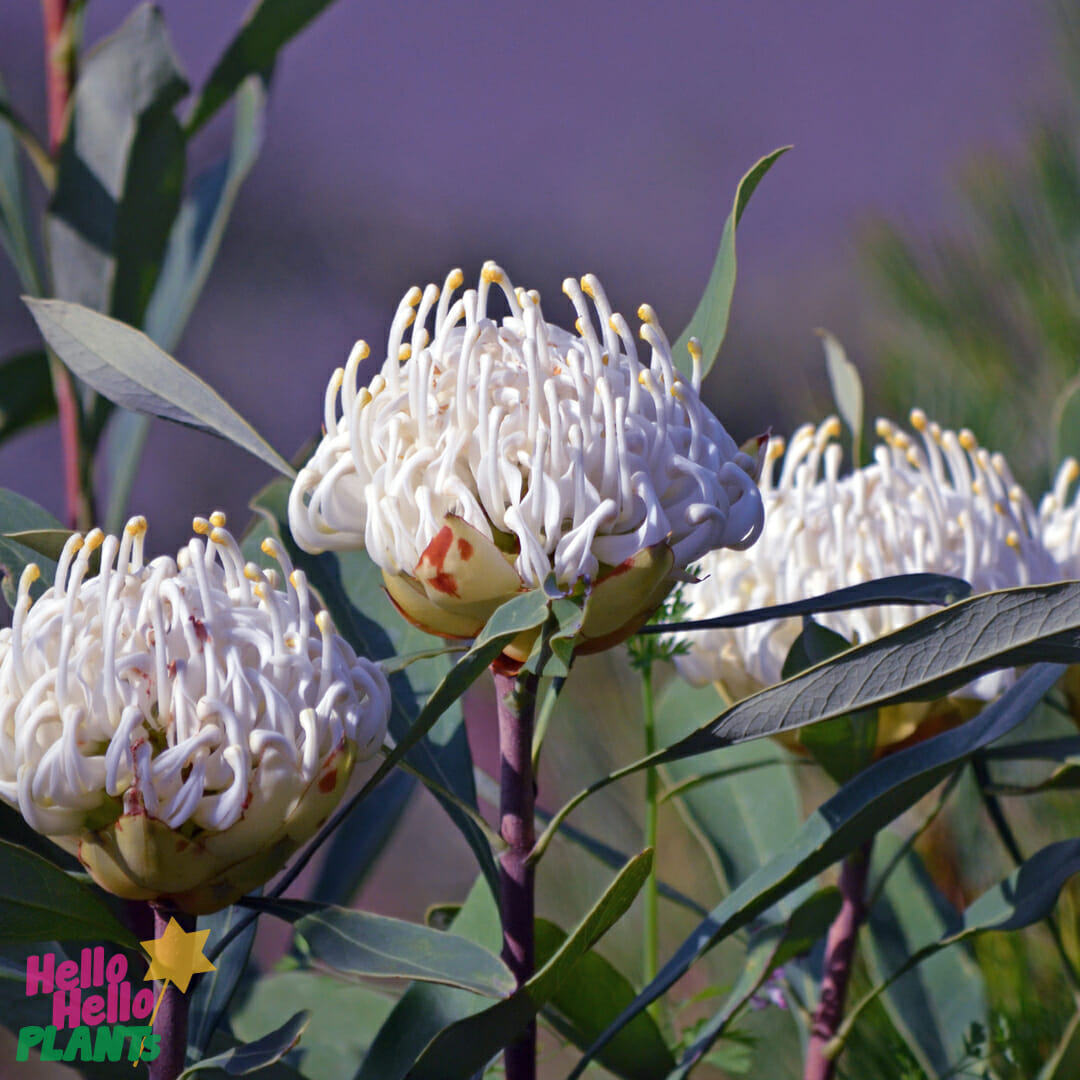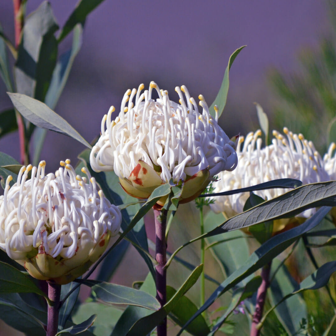 Telopea or Waratah has green foliage and stunning, creamy white flowers in spring. Perfect for low-maintenance and native-inspired gardens, this hardy native is also eye-catching in decorative pots and containers. It is drought & frost tolerant when established, and perfect for attracting native wildlife. Mature growth: 3×1.5m wide.