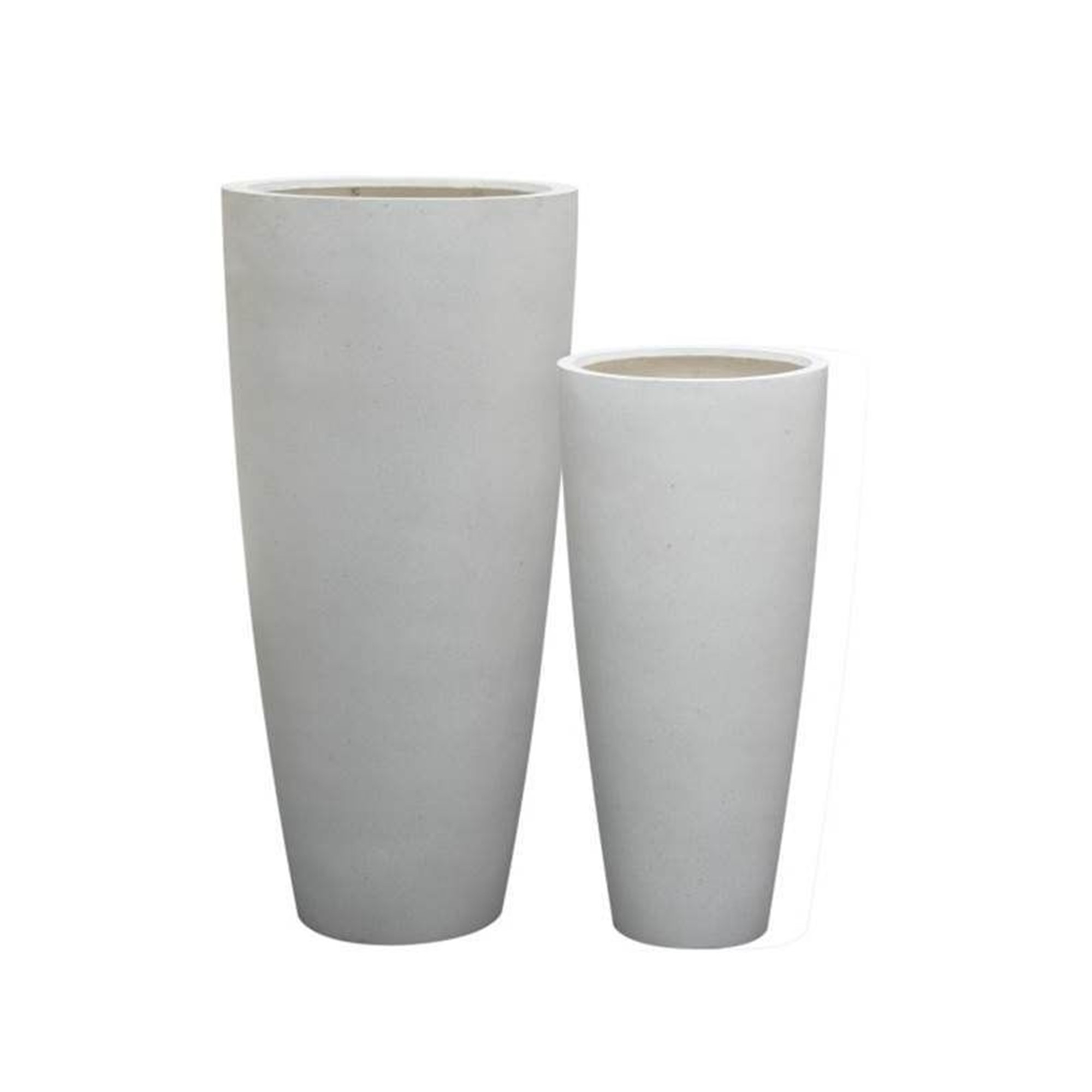 White decorative Poly Fiberstone Lightweight pots for indoor and outdoor use with feature plants. Great alone or try clustering different sizes to make an attractive feature.