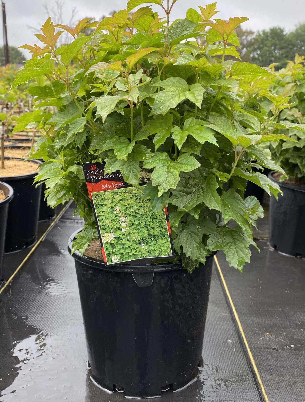 Also called a European Cranberry Bush, Viburnum Midget is a dwarf flowering perennial shrub that is deciduous. It usually gets to around 60cm tall. It has maple-shaped leaves that are dark green in color that change into a lovely purple throughout autumn.