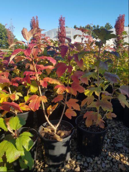 The Snowball bush is popular and easy to grow. This large shrub grows into an upright dense mound. The three-inch clusters of snowball flowers start out apple-green and morph to white, eventually fading to a rosy colour. You can cut the flowers to use in displays. An alternate name for this cultivar name is “Sterile,” which reflects the fact that this type of snowball bush produces no berries. The leaves are three-lobed and somewhat resemble the leaves of maple trees. Like maple, the leaves can turn reddish-orange in the fall.