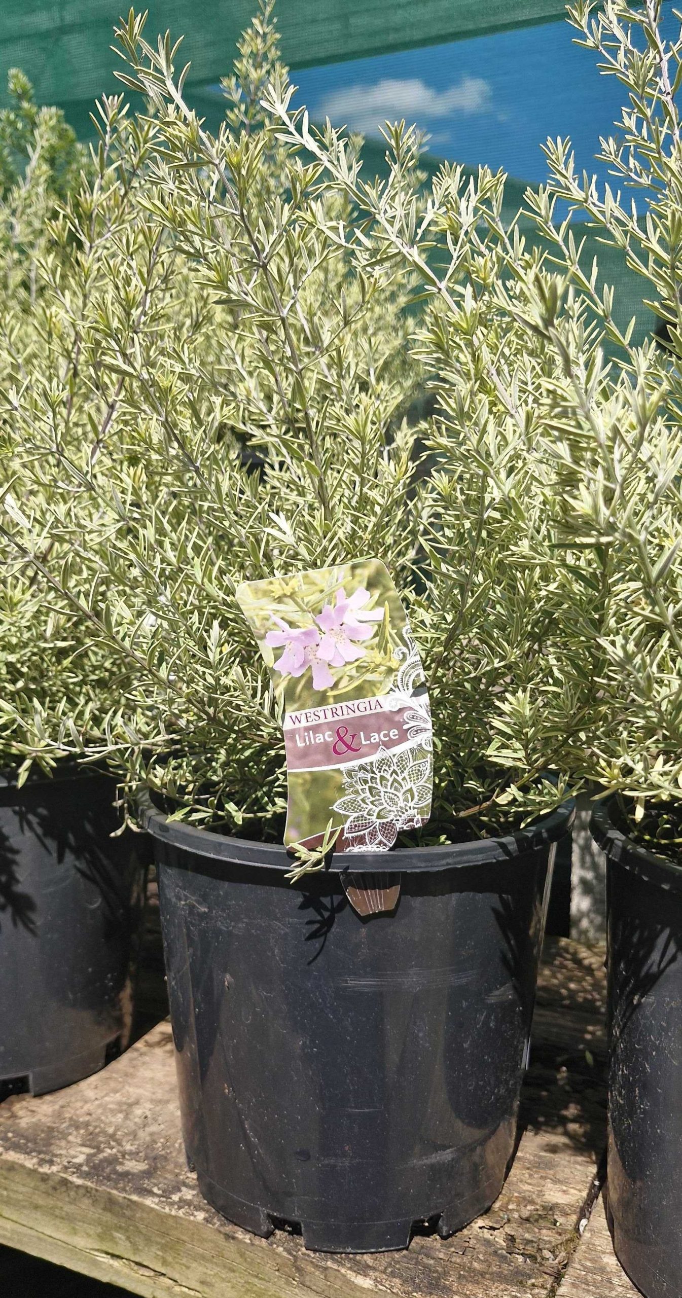 Lilac and Lace Coastal Rosemary is a fantastic specimen showing soft velvety variegated blue-green foliage with cream edges and small mauve flowers in spring and summer. Plant in full sun with well drained soil. Very low maintenance. Will look excellent as a border plant, in pots, rock gardens, native gardens or alone as a feature.